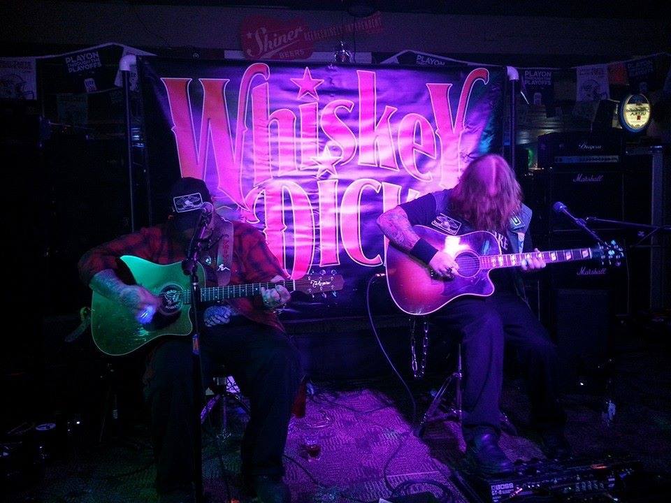 WhiskeyDick’s live show is a true spectacle: two giant, tattooed, mean-looking dudes saunter on stage and sit down on 2 chairs, then pick up acoustic guitars and proceed to amaze everyone by generating more power than a full band by means of Fritz’s deep, rich vocals, Johnson’s unapproachable acoustic guitar heroics, and their triumphant songwriting.