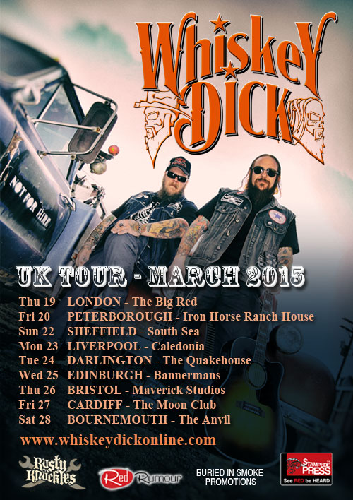Cult favourites WhiskeyDick return to the UK this March to blow minds with a double barrel blast of dreadnaught shredding and hillbilly bellowing that makes you want to knock back a shot, stand up tall, and holler “Oh-Hell-YeeHaw!”